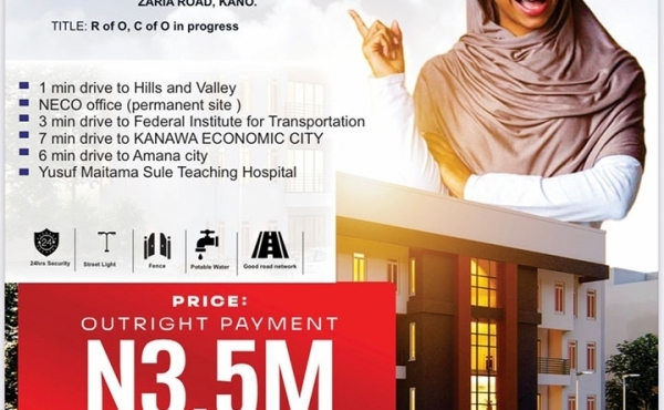 225m² plots of land available for sale in a new gated estate Kano, Zaria Road.